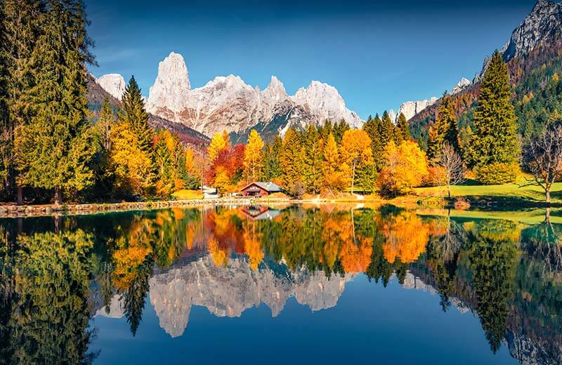 L’autunno è il periodo della luce dorata e dell’aria limpida di montagna. Le foreste e i vigneti si colorano di tonalità calde,