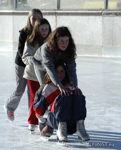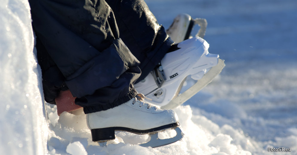 Pärchen - Schlittschuhe anziehen und hinauf auf