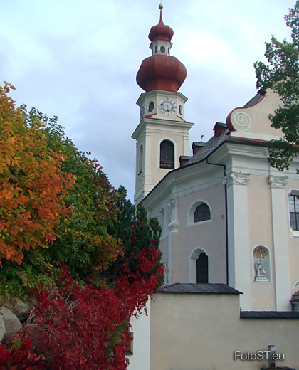 und auf die Pfarrkirche von Niederdorf an. Sie